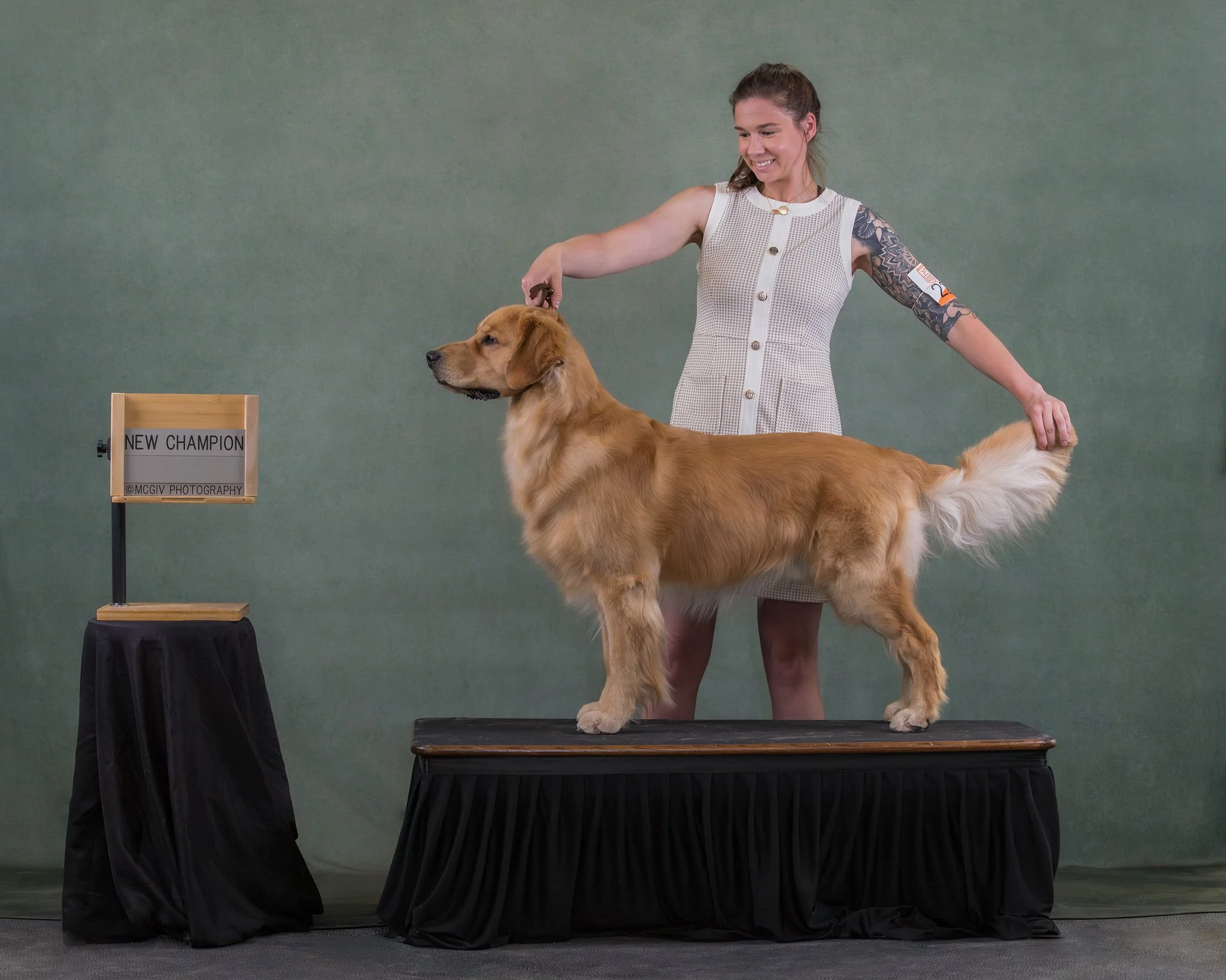 Accomplishments: Crush went Best Puppy in Show x2 and Reserve Best Puppy in Show x2 at his first show in UKC at 3 months old. He earned his AKC Puppy of Achievement and first AKC points under breeder-judge Linda Hurlebaus at 7 months old. Crush was awarded Mile Hi Golden Retriever Club Top Puppy Trophy for 2024! This year, he went Best of Breed for the first time at only 15 months old under esteemed judge, Ms Lee Ann Bateman. That same show day, we also went on to win a Group 1 in the owner-handler ring. Crush placed 2nd in his bred-by class at the 2025 GRCA Western Regional this past summer. He is almost halfway to finishing his AKC Championship as we continue to work on those majors.