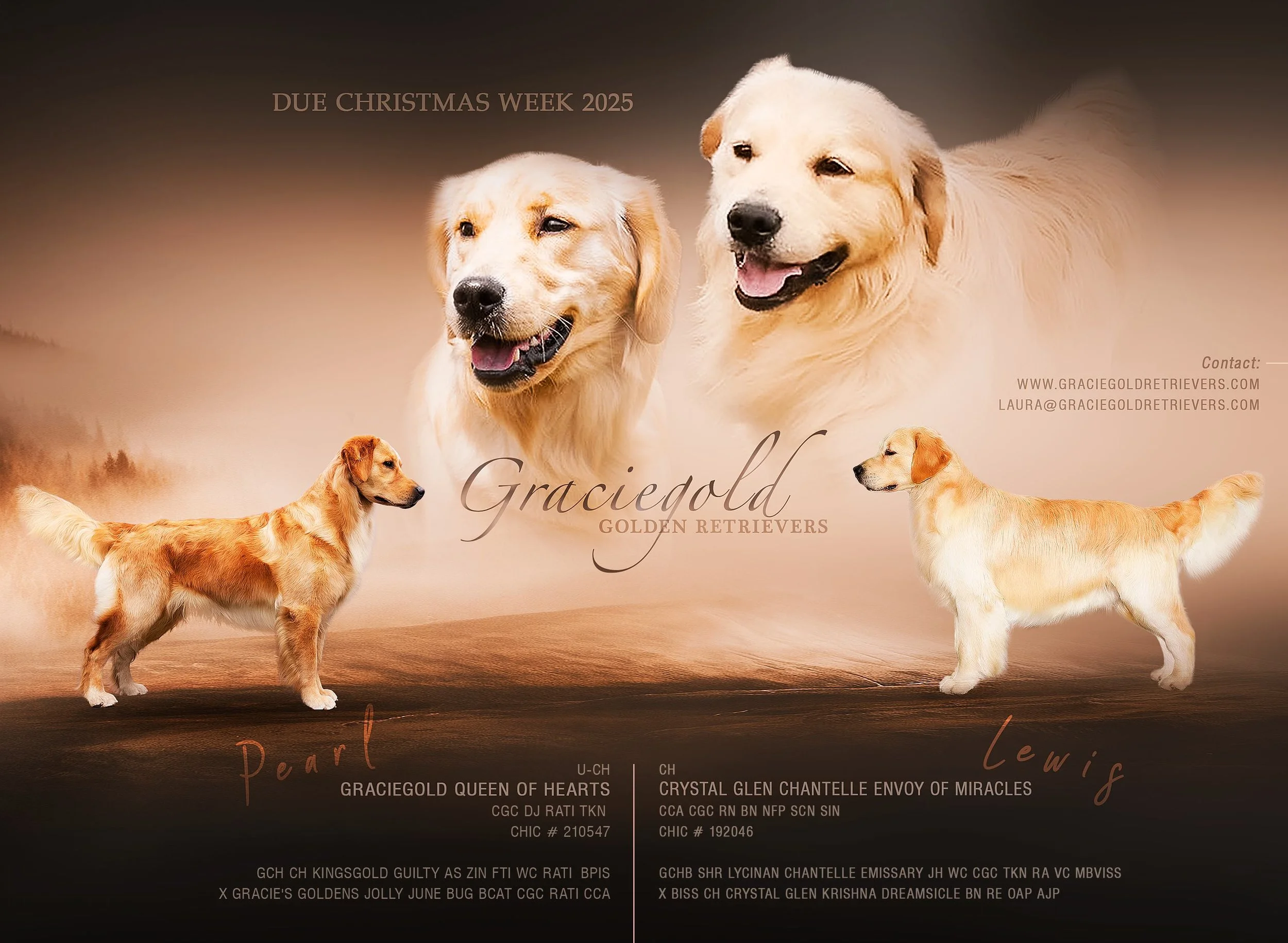 Pearl has been confirmed pregnant and is due Christmas. The pedigree for Lewis (Crystal Glen Chantelle Envoy of Miracles) is linked here.The pups will go to their new homes end of February 2026. We may have some availability on this litter depending on how many puppies she has. We will also be looking for a home to co-own the pick male from this litter to possibly be shown and remain part of our program.
